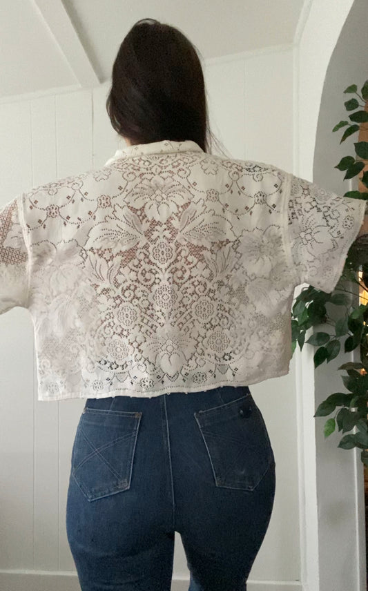 Sold out(M/L) Upcycled Tie Front Lace Blouse
