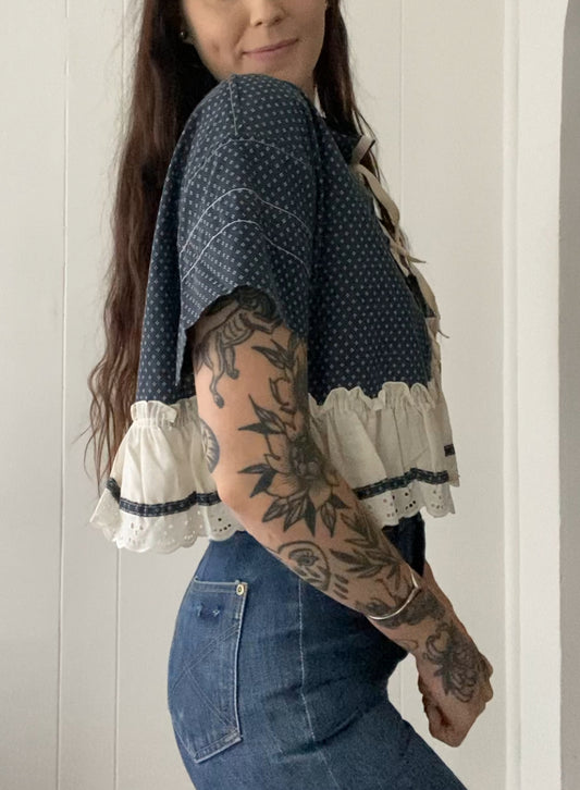 Upcycled Tie Front Blouse (Rainbow Hem!)