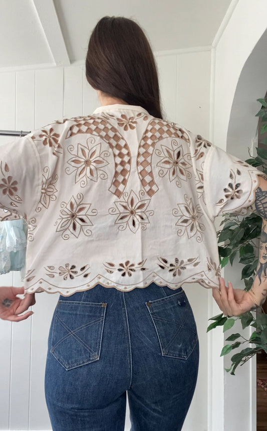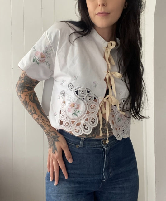 Sold outUpcycled Tie Front Horseshoe Blouse