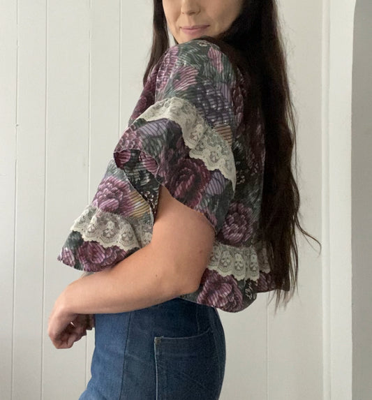 Sold outUpcycled Tie Front Floral Quilt Vest