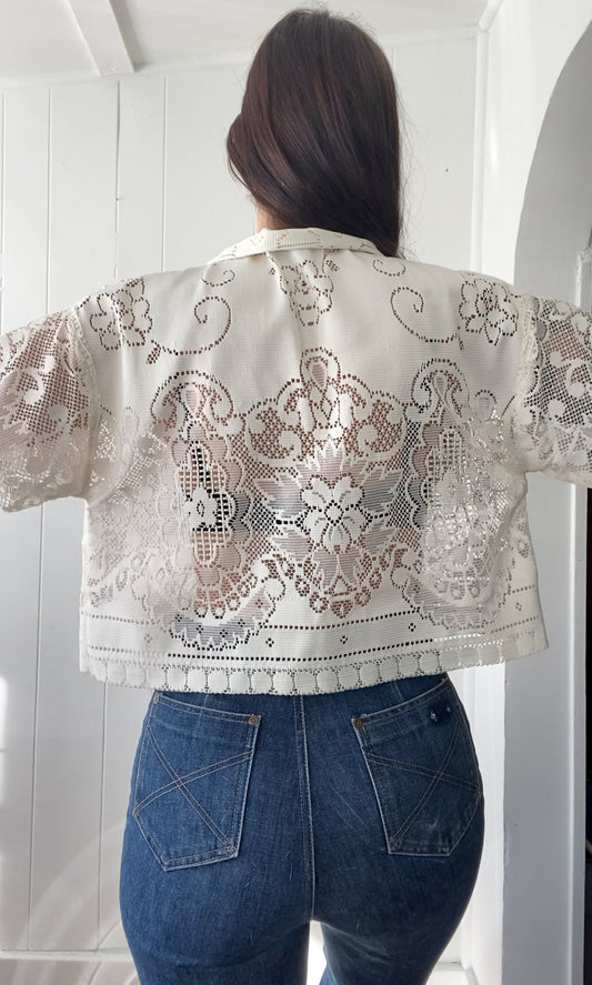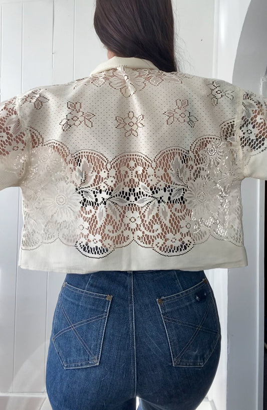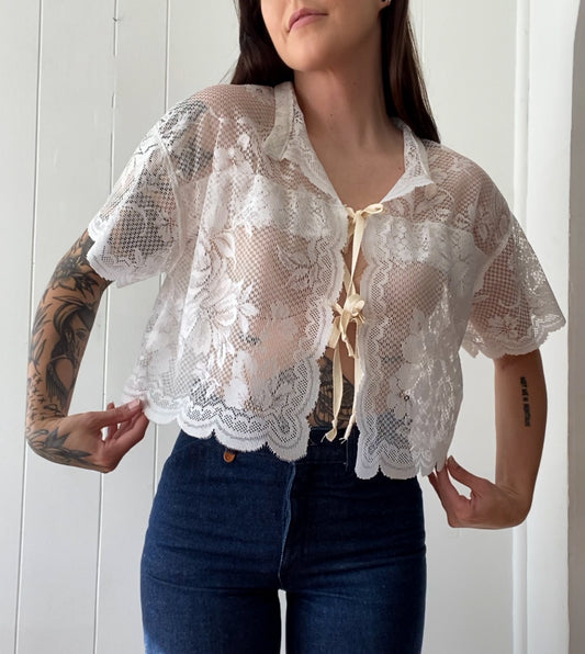 Sold outUpcycled Tie Front Lace Blouse