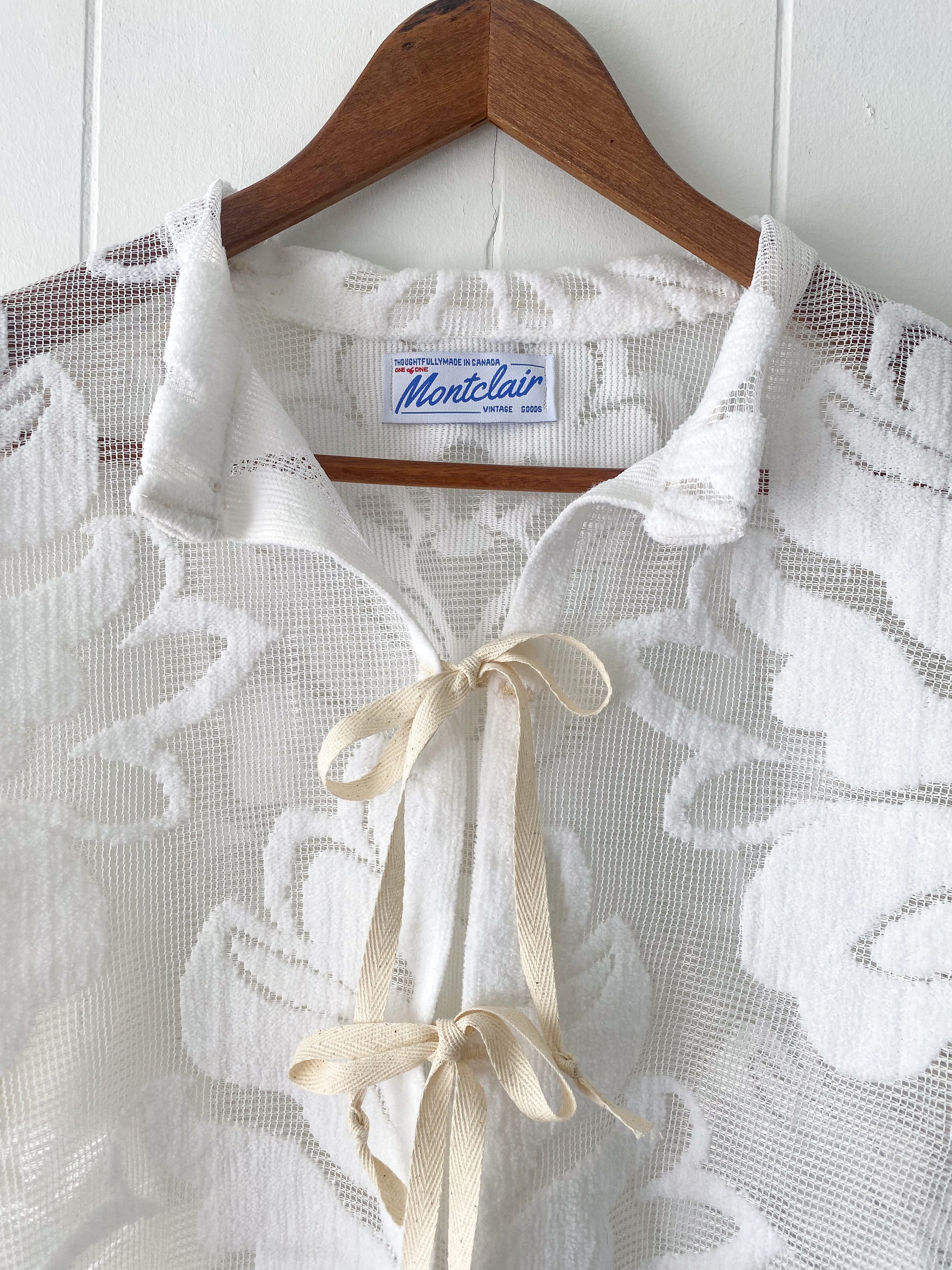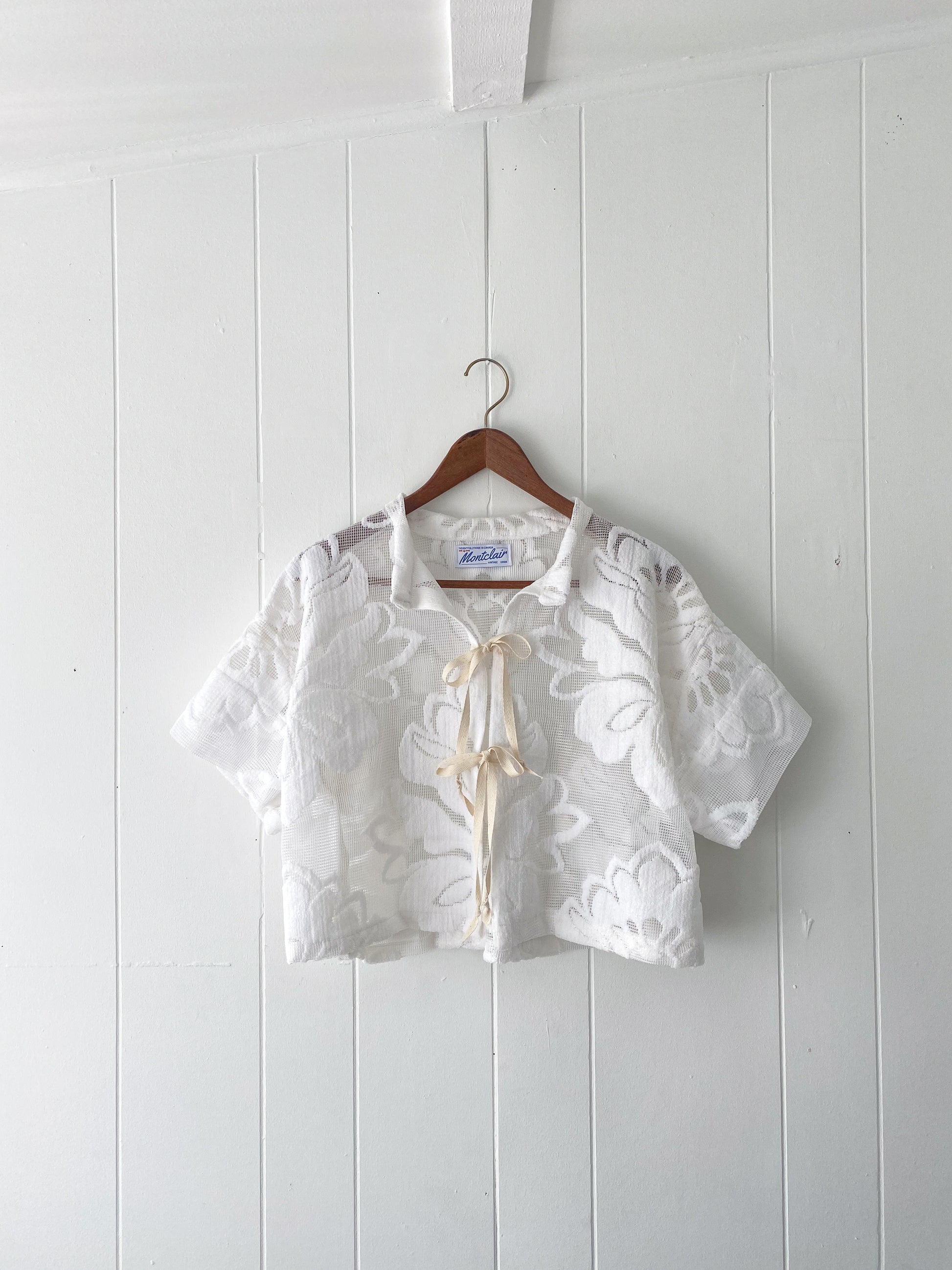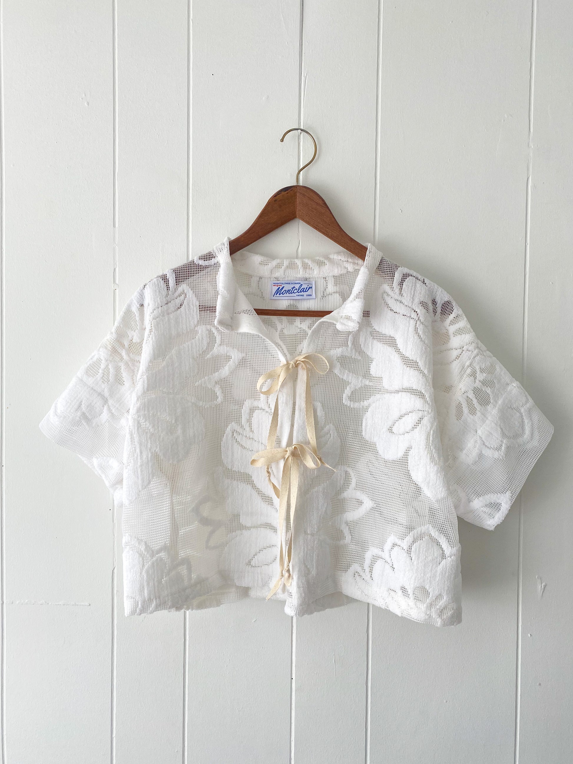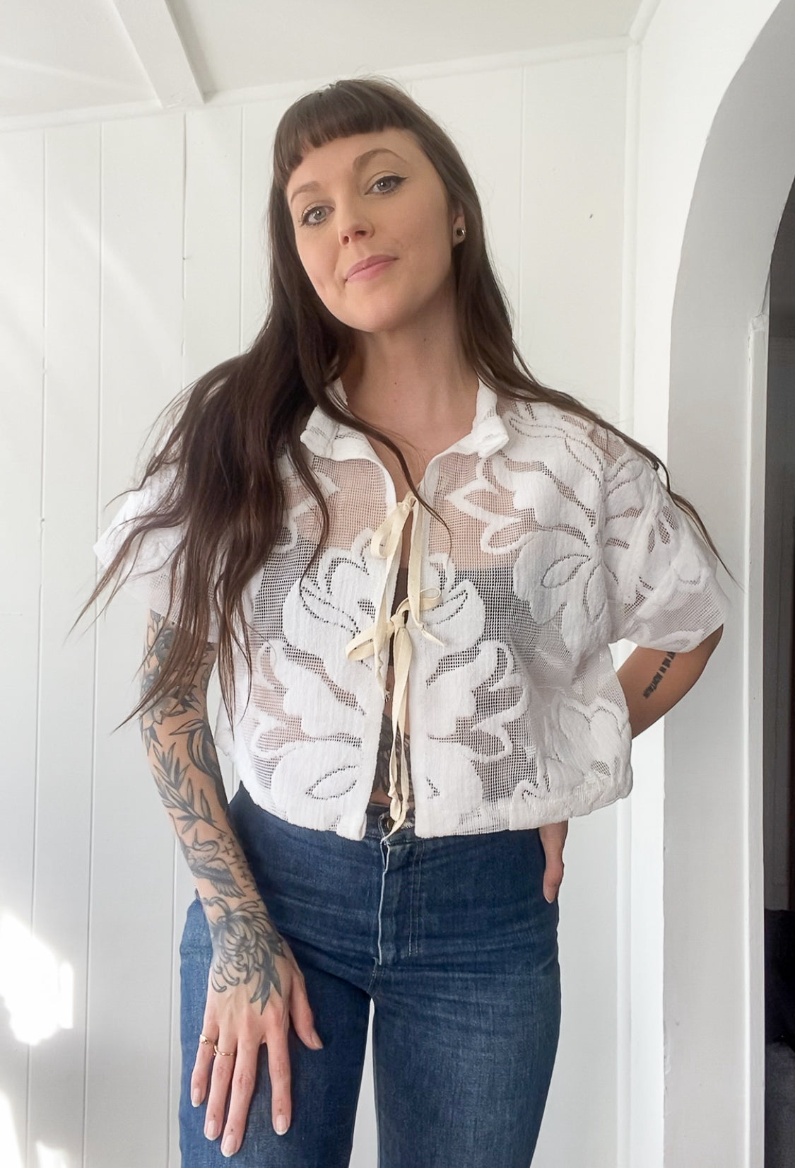 (M) Upcycled Tie Front Lace/Mesh Blouse