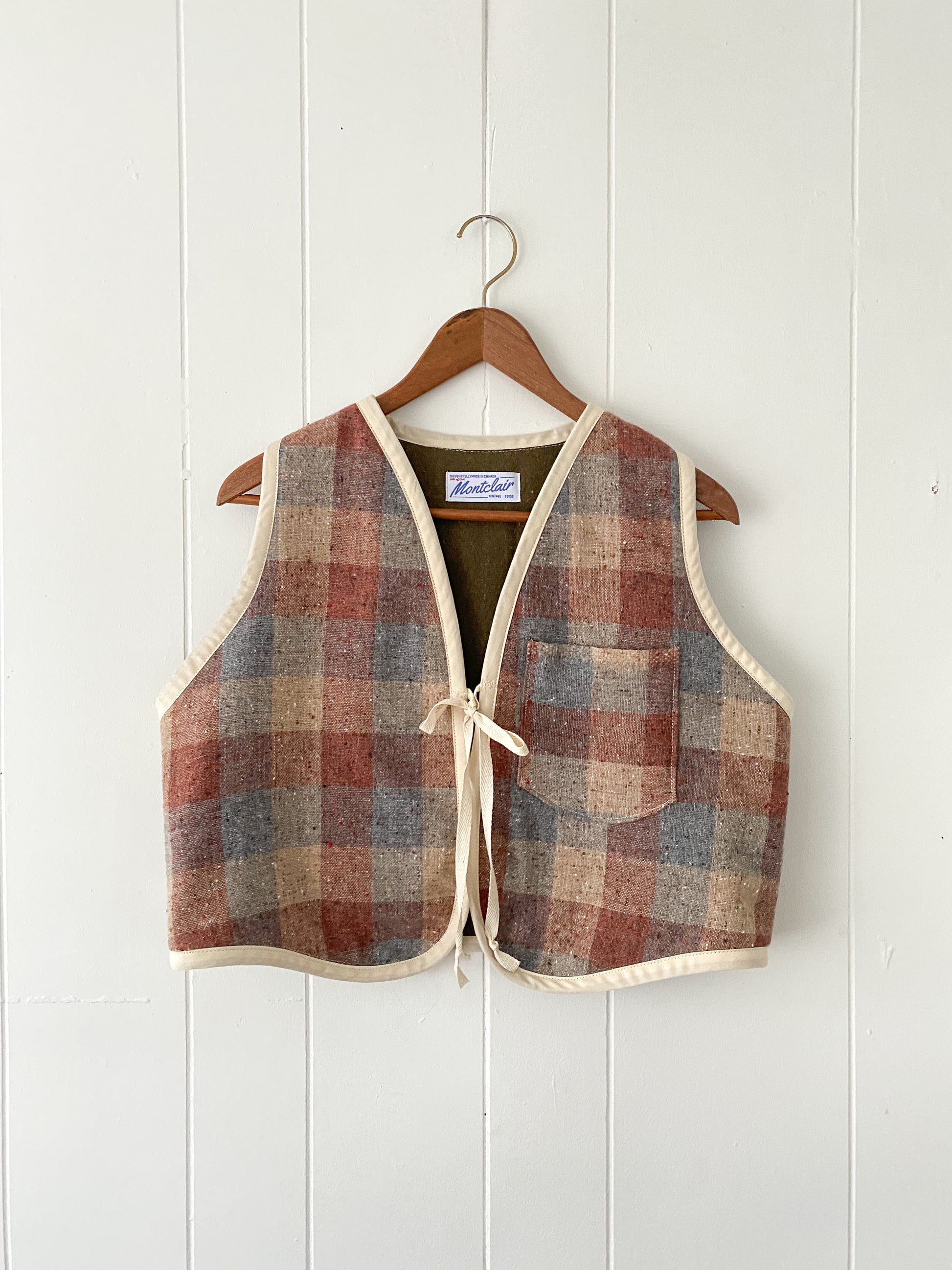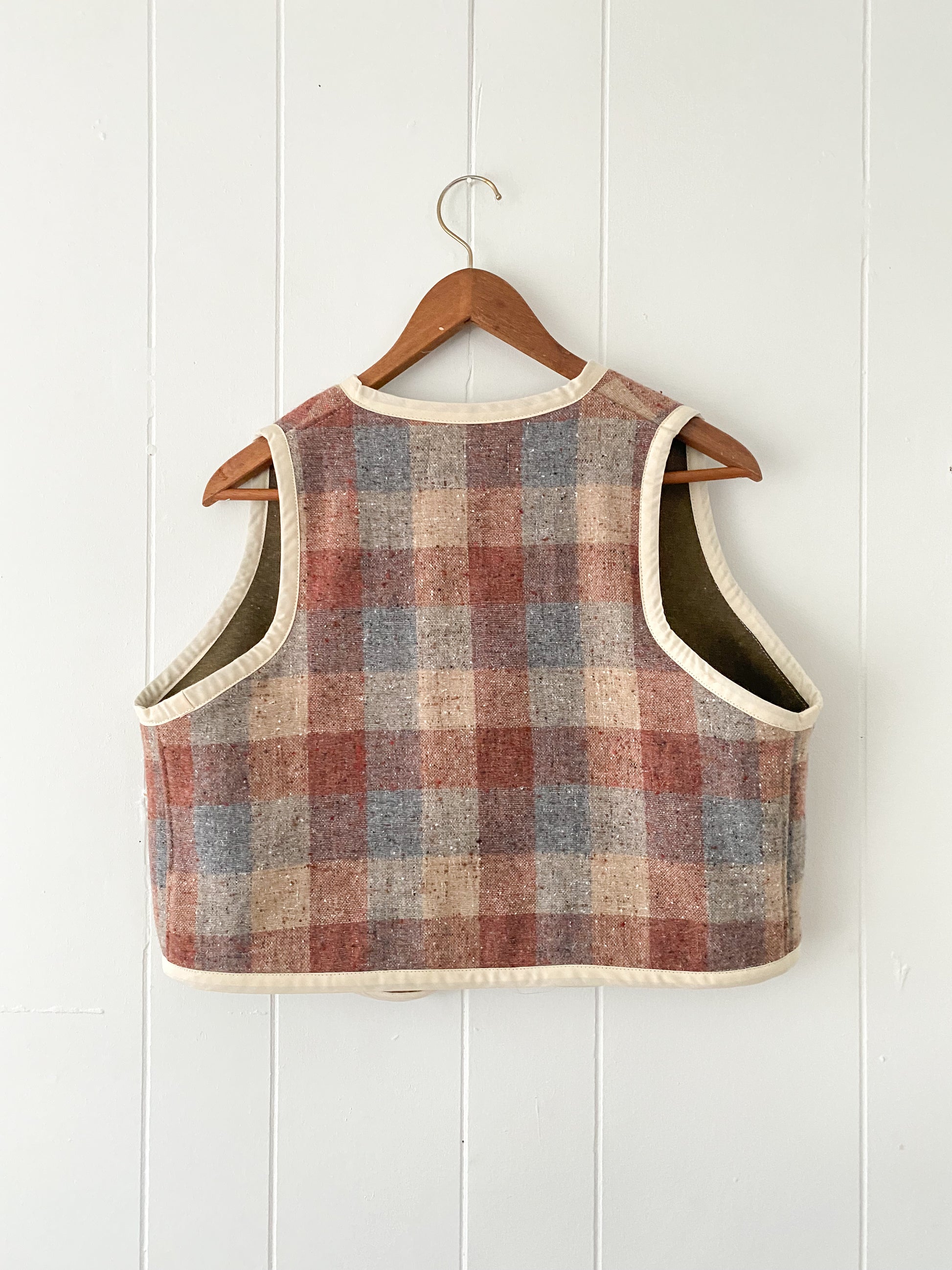 Made from vintage checkered material. Slightly rough to the touch. Lined with an army green wool blanket.
