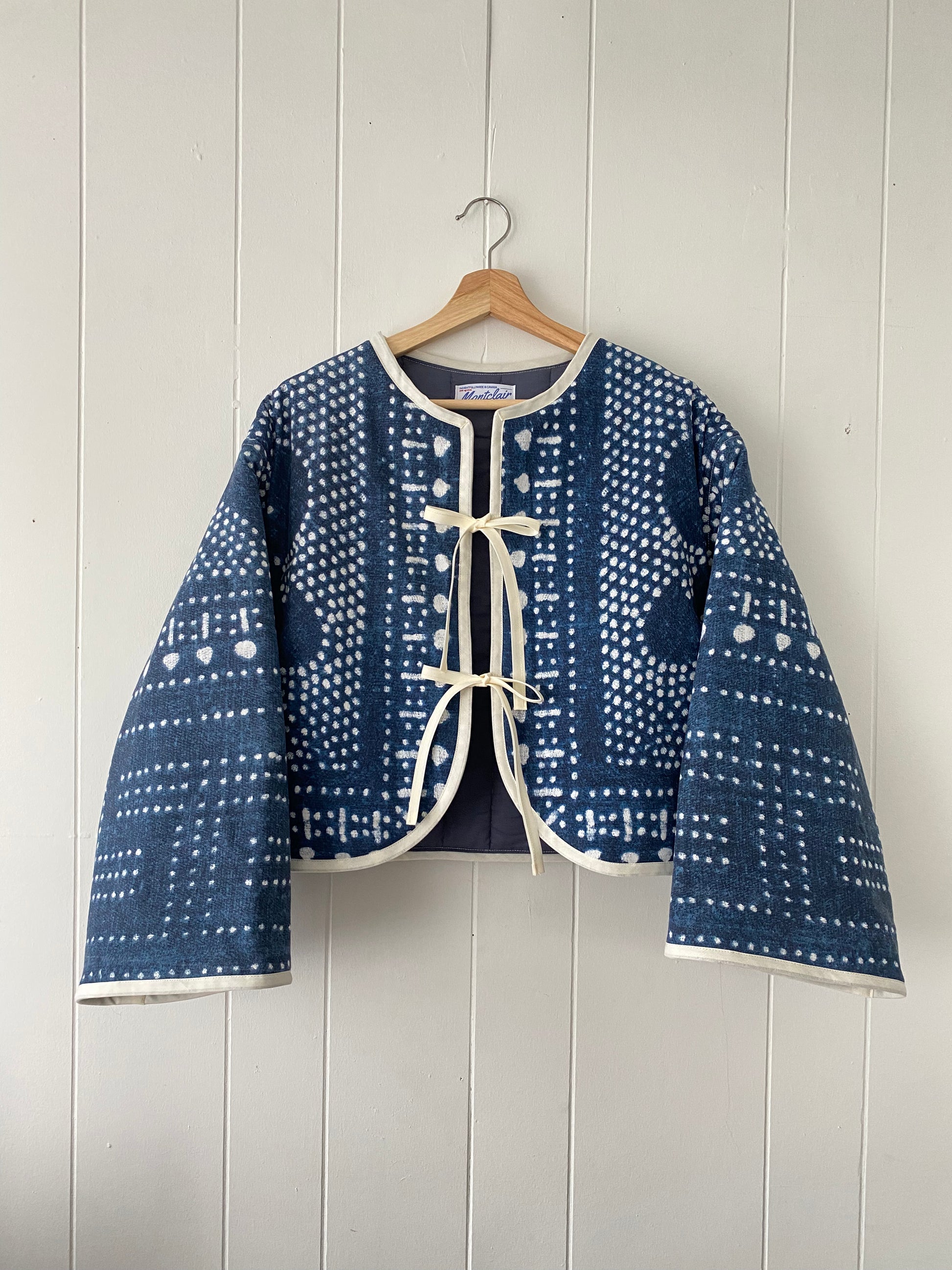 Outer shell made from a thrifted duvet cover. Inner shell made from thrifted quilt.