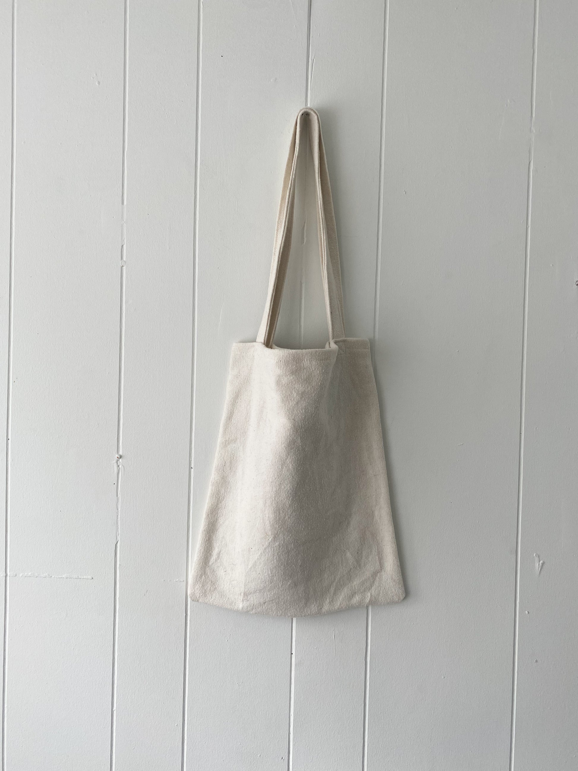 Tote is upcycled from a vintage blanket. Quilt block is vintage.