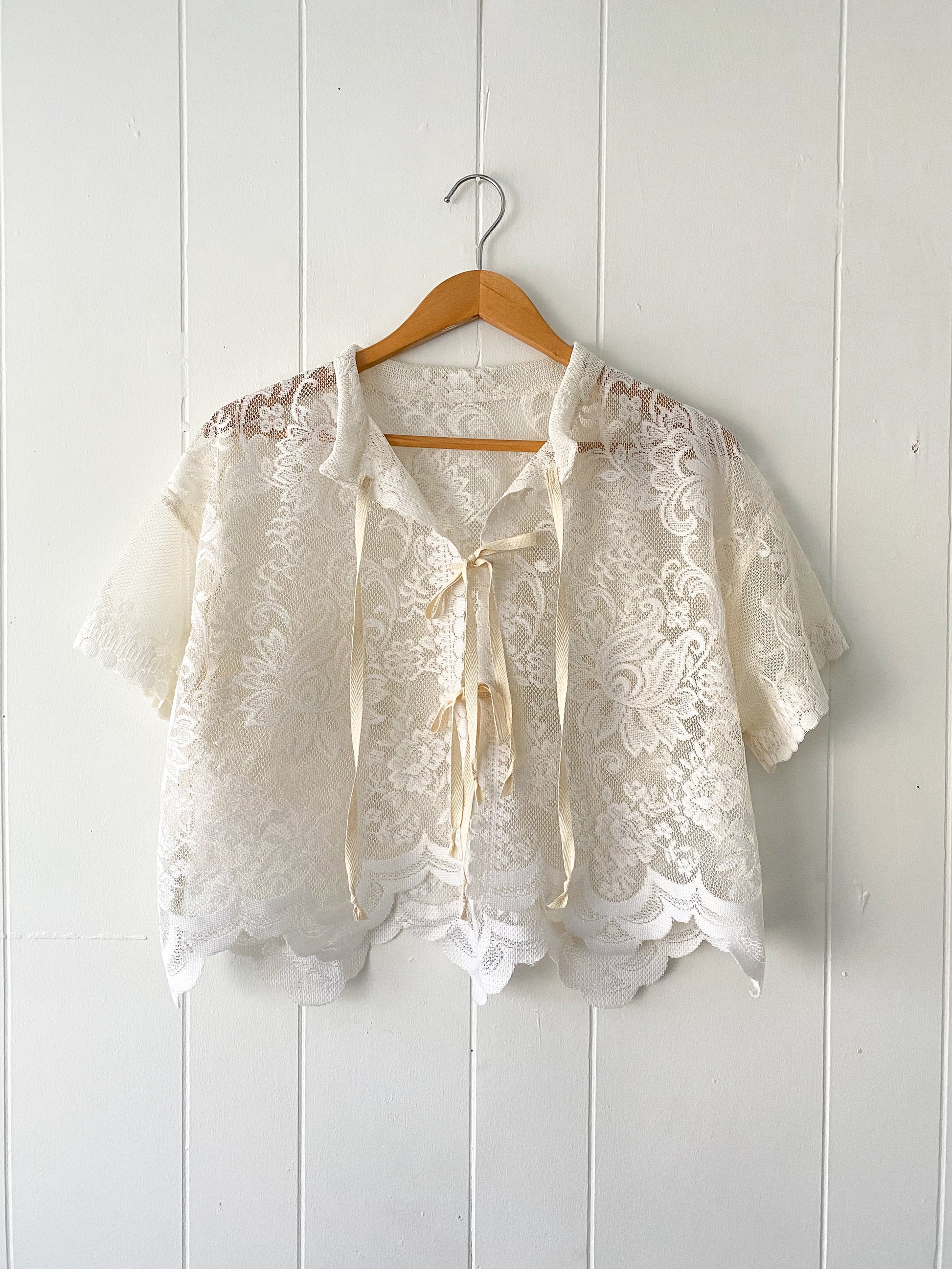 Upcycled Tie Front Lace Blouse.