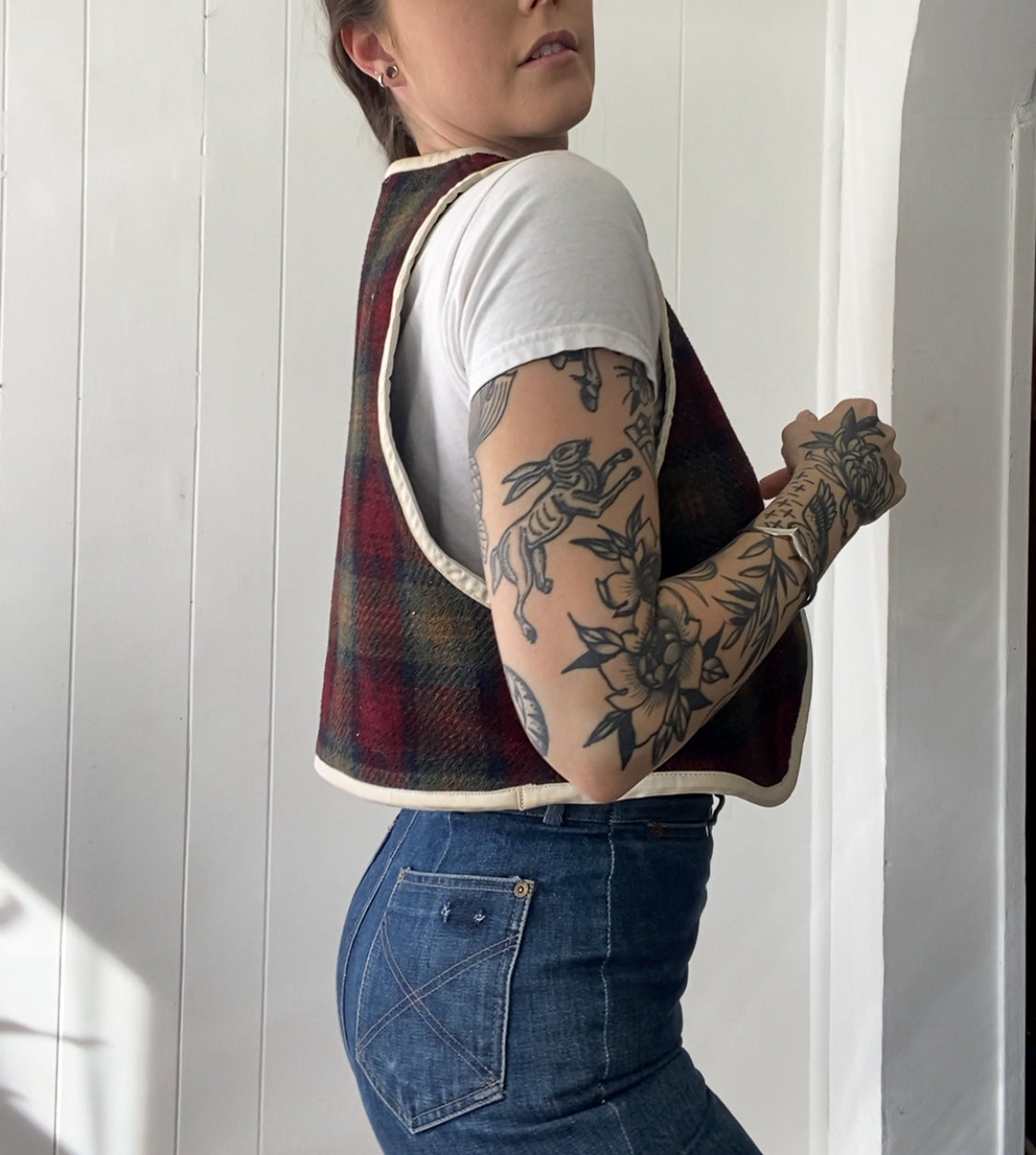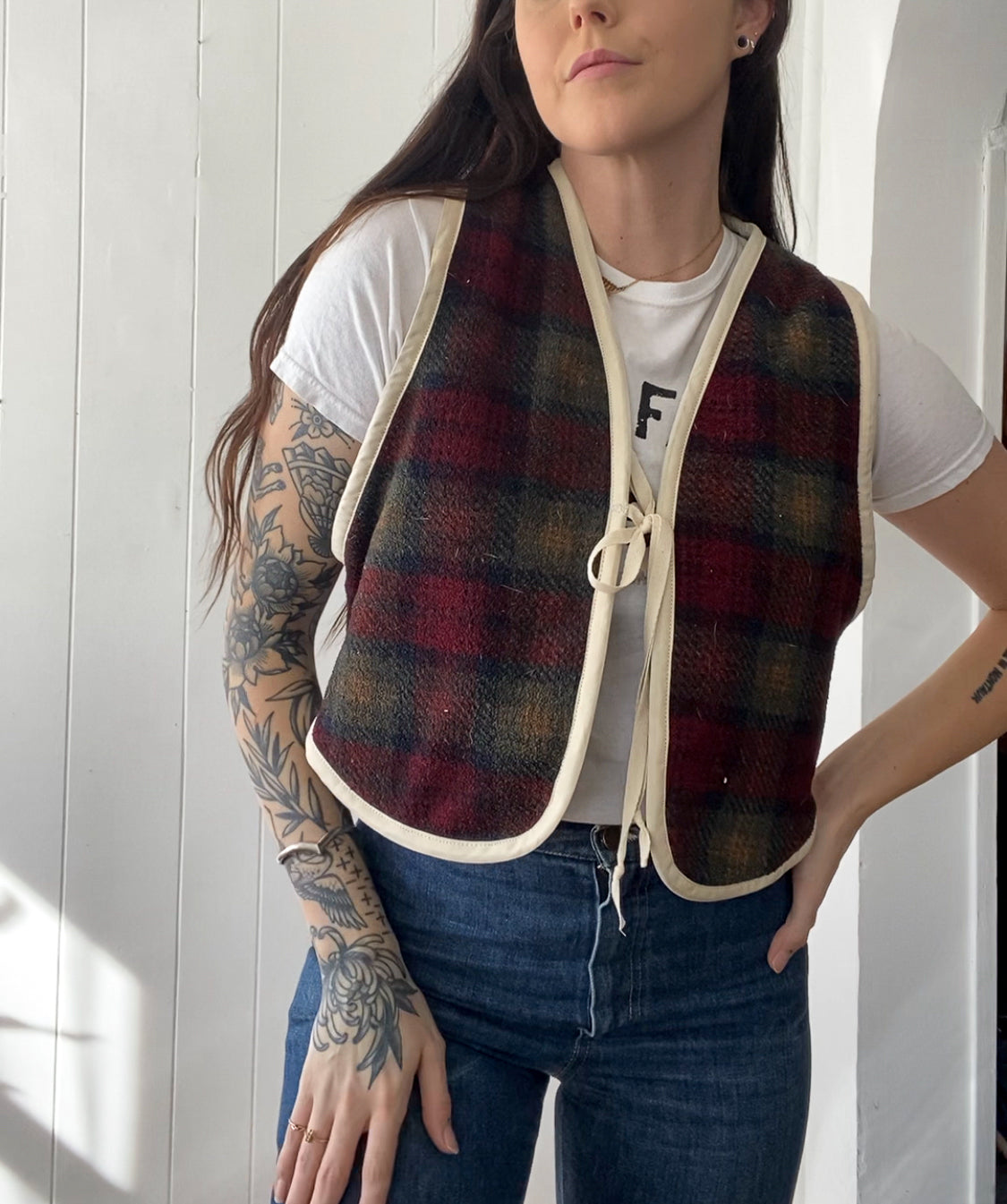 Made from a vintage plaid fleece blanket. Lined with fleece.