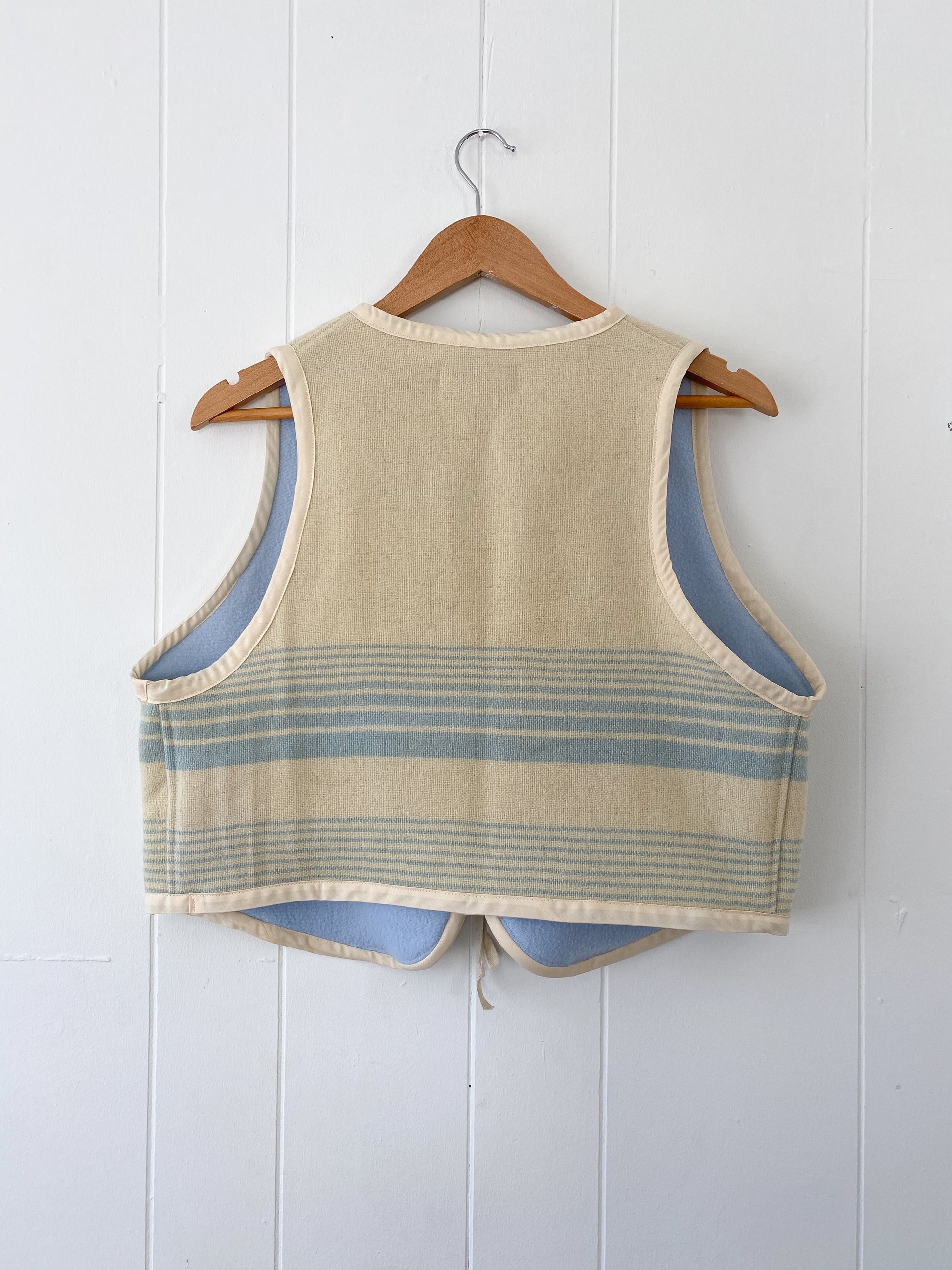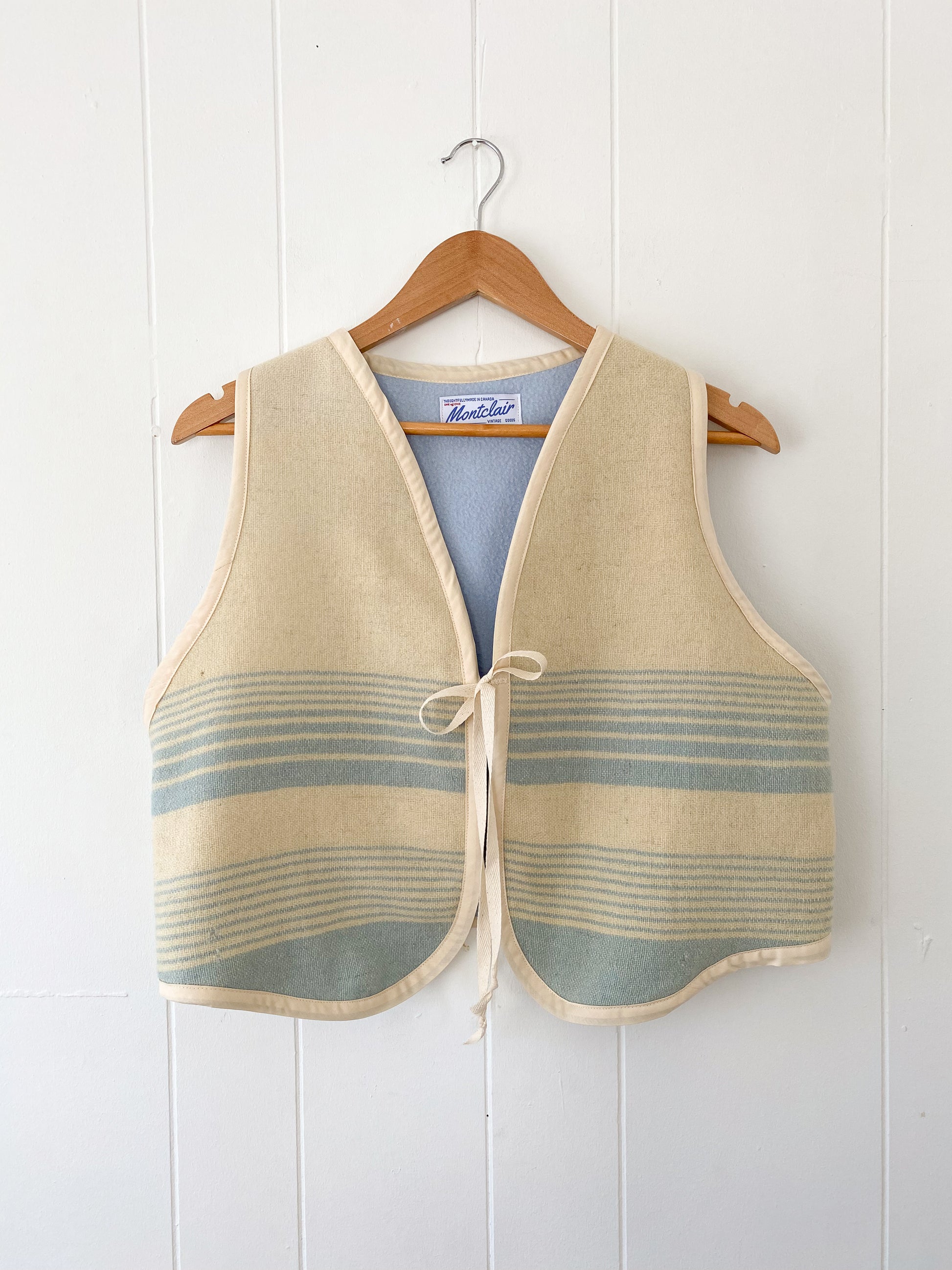 Made from a vintage wool blanket. Lined with a cozy fleece blanket.