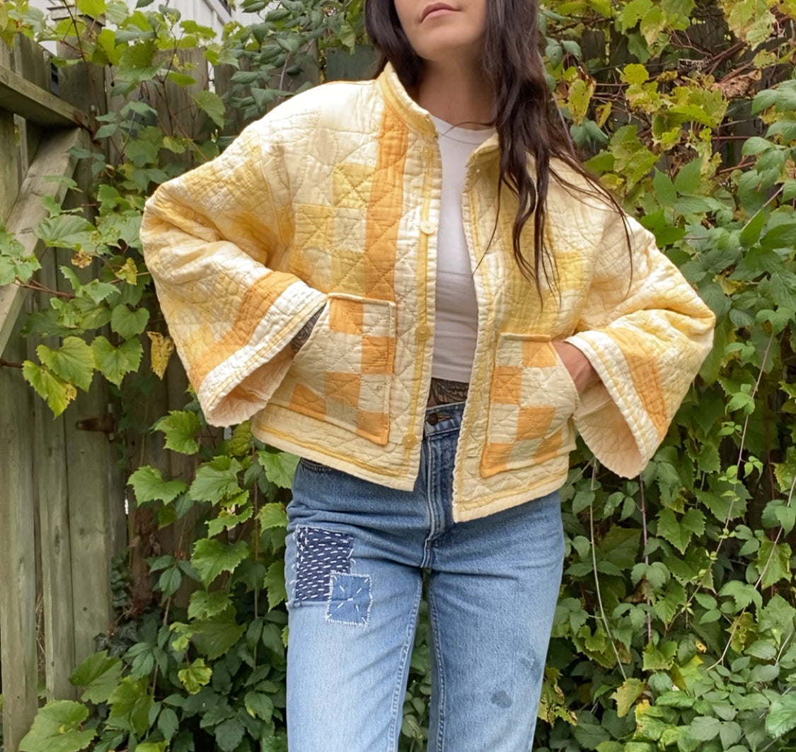 Reworked Vintage Irish Chain Quilt Jacket