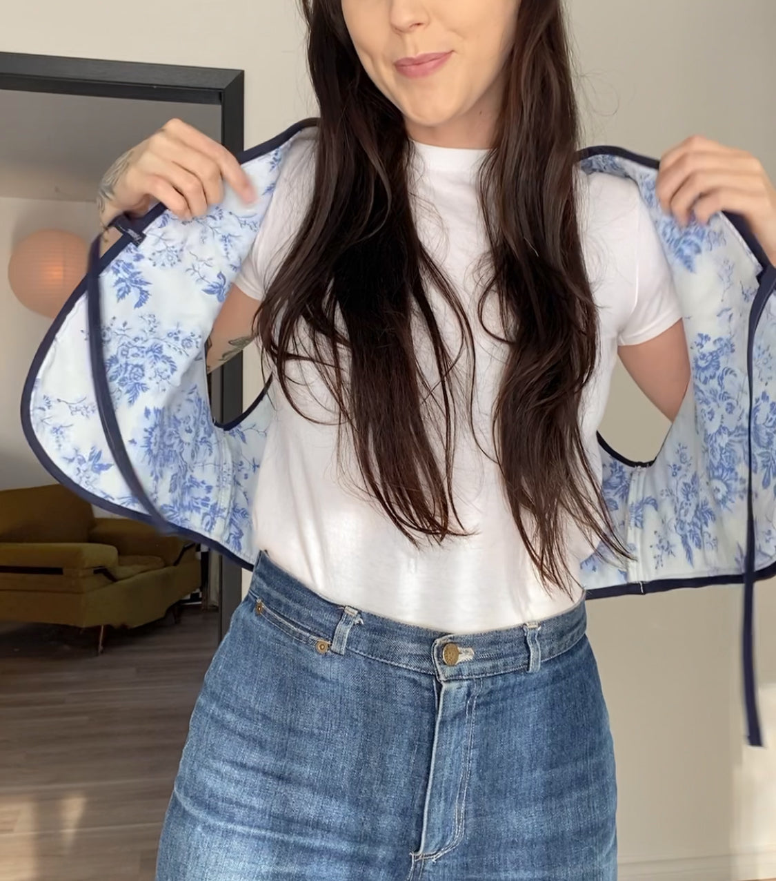 Made from a vintage wool blanket (great condition). Lined with a vintage floral bedsheet.